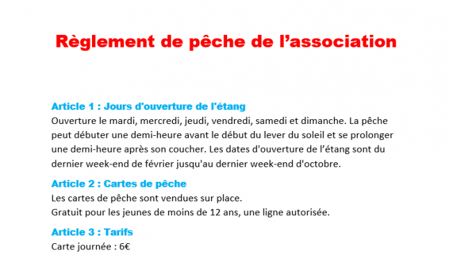 Suite à de nombreux constats de non-respect du règlement en vigueur, notamment en ce qui concerne le règlement de la pêche en batterie, la pratique de la pêche en batterie sera strictement interdite sur l’ensemble du plan d’eau pour la saison 2026 et jusqu’à nouvel ordre.